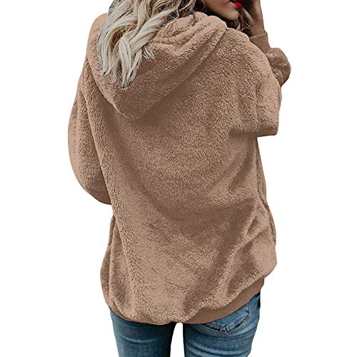 Lomelomme Teddyfleece - Giacca invernale in pile da donna, taglia grande, con cappuccio e cerniera, in pelliccia sintetica, cachi, L