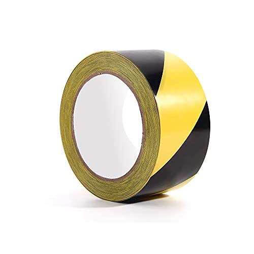 LOMHOK - Nastro di sicurezza per segnalazione di pericolo nero/giallo, 48 mm x 33 m, rotolo di nastro adesivo in PVC