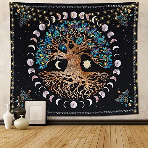 LOMOHOO Arazzo da parete con albero della vita, stile bohémien, hippie, albero dei desideri, tappeto psichedelico, mistico, estetico, arazzo da parete per soggiorno e camera da letto