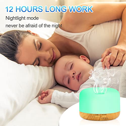 LOMUG Diffusore di Aromi, 450ML Umidificatore Ad Ultrasuoni, Diffusore di Oli Essenziali, Diffusore a LED 7 Colori Luci, Automatico Senz'acqua Spegnimento per Casa Ufficio Bambini Camera Letto