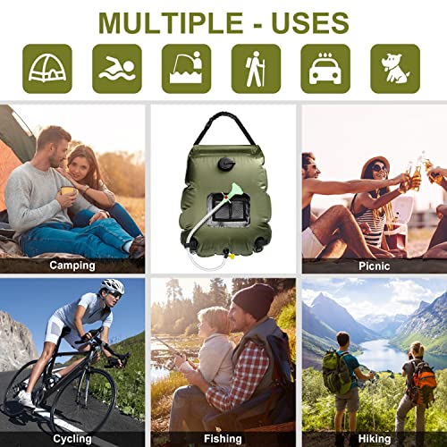 LOMUG Doccia Solare Campeggio, 20L Borsa da Campeggio Solare Portatile Borsa da Doccia Solare Borsa da Bagno on Tubo Rimovibile e Soffione per Campeggio Escursionismo Trekking Arrampicata All'aperto