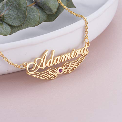 Lonago, collana con ciondolo a forma di ala d'angelo, in argento Sterling 925, personalizzabile con nome e pietra portafortuna e Argento, cod. ONX0010-S-B