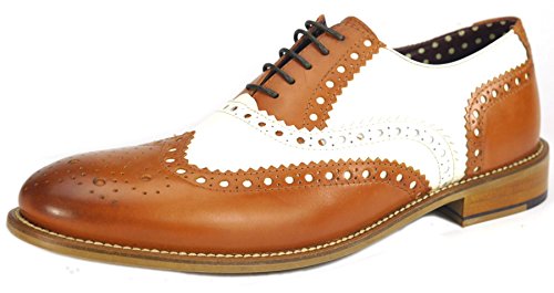 London Brogue Scarpa da uomo, in pelle, con lacci e punta a coda di rondine, scarpe da sera "Gatsby", marrone (Tan / White), 7 UK