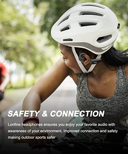LonFine Cuffie Conduzione Ossea, con Bluetooth, Senza Fili, microfono, cuffie ad orecchio aperto, cuffie sportive impermeabili IPX5per Corsa, Guida, Allenamento