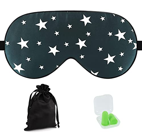 LONFROTE Stelle Mascherina per Dormire Mascherina Seta Pura Mascherina Occhi Traspirante Maschera per Dormire, con tappi per orecchie e borsa per trasportare, leggero e confortevole e regolabile, morbido morbido per uomini e donne
