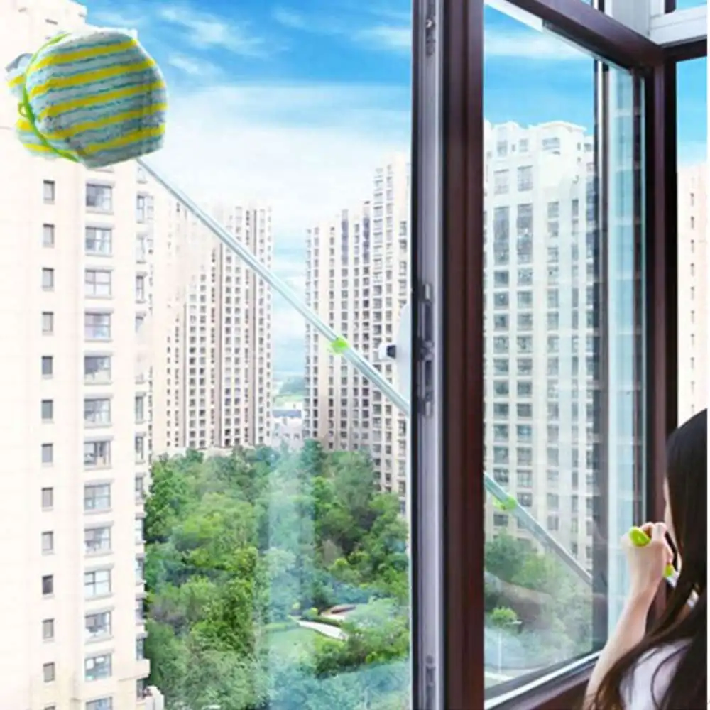 Long Handle Windows Mop Sponge Telescopic Window Cleaning Brush Device Dust Double Side Clean Glass Wiper Washing Tools