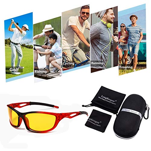 Long Keeper Occhiali da Guida per Uomo e Donna di Moda Occhiali per la Visione Notturna per Ciclismo, Corsa, Pesca, Guida (Black Red Frame)
