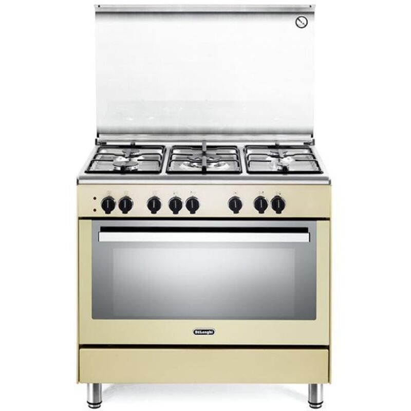 De?Longhi PEMC 96 ED. Tipo di prodotto: Cucina freestanding, Colore del prodotto: Crema, Tipo di controllo: Manopola. Tipo di piano cottura: Gas, Numero totale di fuochi: 5 Fornello(i), Tipo di superficie superiore: Acciaio inossidabile. Dimensione del forno: Largo, Sorgente di alimentazione del forno: Elettrico, Capacità netta del forno: 87 L. Tipo di timer del forno: Meccanico, Regolazione altezza: 5 cm. Classe efficienza energetica: A