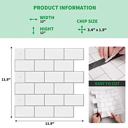 LONGKING 10 fogli di piastrelle adesive per paraschizzi da cucina, 30,5 x 30,5 cm, bianco brillante con malta grigia