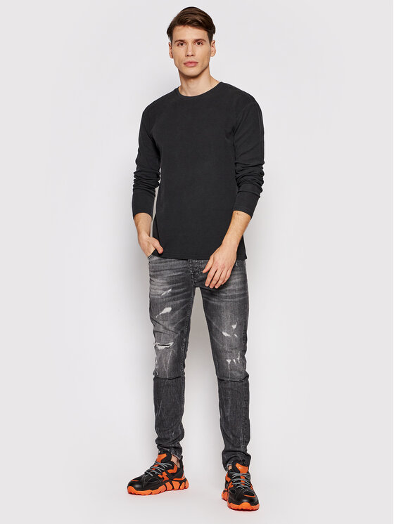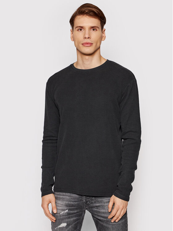 Longsleeve Henry Waffle 106453 Nero Regular Fit