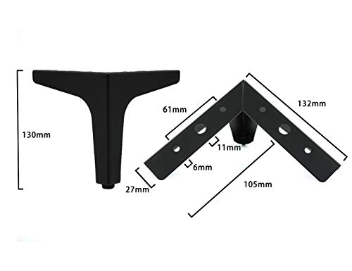 LONGZG 4 pezzi di piedini per mobili neri da 13 cm, con viti,Gambe per mobili fai-da-te, adatte per divano, tavolino, mobile TV, letto e altre gambe tavolo ferro.