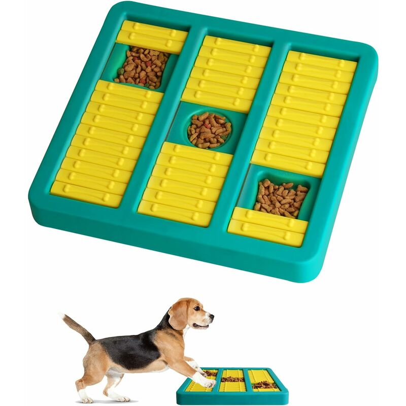Descrizione del prodotto Questo è un modo molto intelligente per dare da mangiare agli snack dei cani! Questo è un modo molto intelligente per dare da mangiare agli spuntini dei cani! Ci sono molte tasche diverse sulla robusta tavola quadrata! Ogni tasca ha una copertura scorrevole che può nascondere snack per cani. L'idea è che il cane deve capire come aprire ogni tasca per guadagnare lo spuntino. Il consumo lento fa bene alla salute;