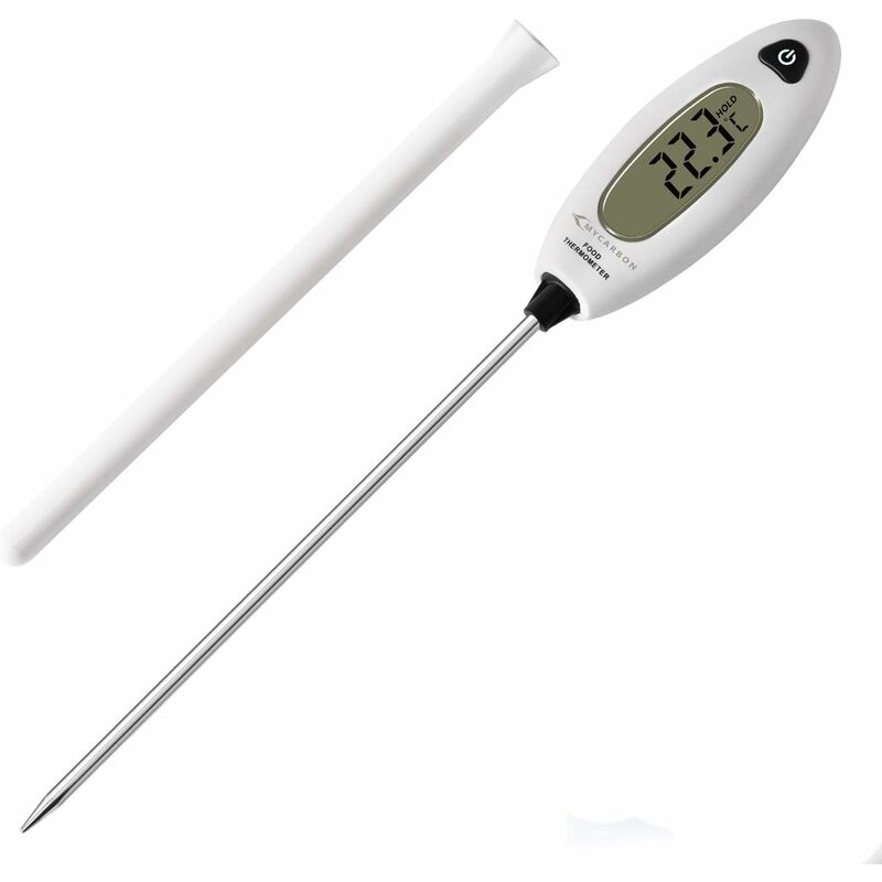 C / -58 ~ 572 ℉, lettura istantanea di 5 secondi, alta precisione (acquisizione importata dal Giappone), avviso di bassa potenza, spegnimento automatico per risparmiare efficacemente energia. Una batteria CR2032 inclusa (maggiore capacità e autonomia più lunga rispetto a LR44) SONDA PI LUNGA (5,9 pollici) - Il termometro da cucina ti garantirà una misurazione più sicura senza bruciarti le mani e la sonda di cottura in acciaio inossidabile garantirà il sapore originale del cibo, l'ago sufficientemente affilato eviterà di danneggiare l'aspetto del cibo. GRANDE SCHERMO LCD E FACILE DA USARE - Schermo 40% più grande della maggior parte dei termometri per carne, numero grande, display molto leggibile, grande pulsante di controllo: fare clic una volta sul pulsante per "MANTENERE" la temperatura, fare doppio clic per controllare la temperatura massima/minima, fare clic tre volte per il cambio