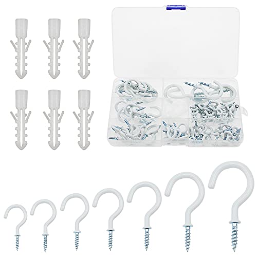 【Un pacchetto con 92】 pezzi di metallo: la costruzione con estremità a vite rende molto facile l'installazione di ganci a tazza, le punte affilate mordono facilmente e rapidamente nel legno, ganci a vite di diverse dimensioni, una buona selezione di dimensioni e bello e facile da trova nella tua scatola.