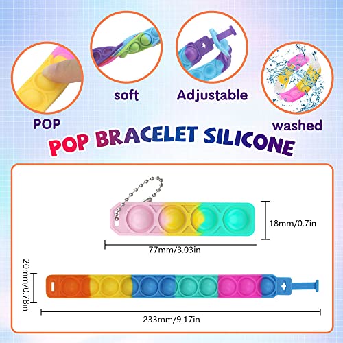 LongZYU 20 Pezzi Mini Pop Push It Fidget Toy Portachiavi Pop in Fidget Toys Set Braccialetti Antistress Colorato Silicone Spremere Bubble Giocattoli Sensoriali Bulk Squeeze per Bambini Adulti
