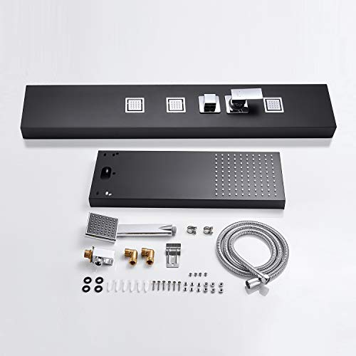 ASPETTO SOBRESALIENTE: Diseño quadrato minimalista, nobile ed elegante, il corpo principale dello pannello della doccia è snello, la texture lucida decora il vostro bagno, mostrando il temperamento nobile.