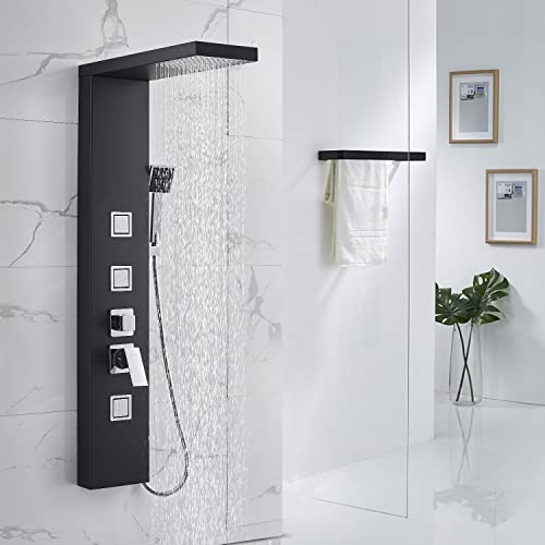 Lonheo-Pannello doccia multifunzione a parete con doccetta, Colonna doccia idromassaggio in acciaio inox 304, doccia con dispositivo di silenziamento del filtro, Nera