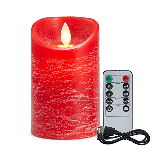 Lonkenn Candele LED Rosso, Candele a LED Ricaricabile, Flickering Flameless Candele, 10 Tasti Del Telecomando, Funzione di Timer 24 Ore, Vera Cera, per Natale Feste Decorazione Matrimonio-12.5cm Rosso