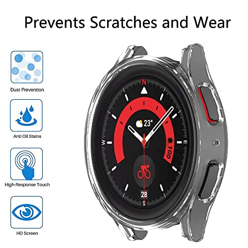【Slim Thin】Questa custodia per SamSung Galaxy Watch5 Pro 45mm è solo 0.3 mm senza aggiungere alcun ingombro. alta sensibilità al tocco, non influenza l'uso del tatto. La protezione per lo schermo è cristallina, con una trasparenza del 99%, conservando l'alta risoluzione dello smart watch.