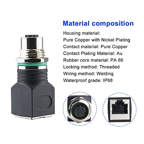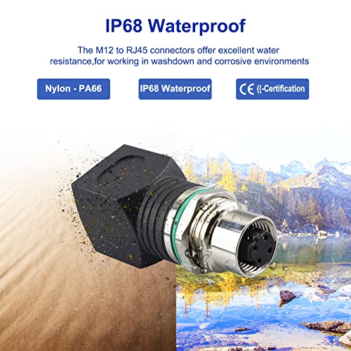 Lonlonty Adattatore M12 a RJ45, connettore dritto RJ45 a 4 pin codice D a connettore M12 a montaggio a pannello, adattatore femmina M12 a RJ45 CAT5/CAT6 impermeabile e schermato