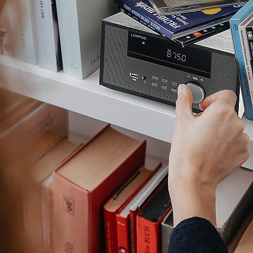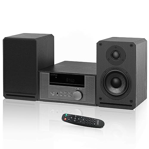 LONPOO Impianto Stereo Casa Sistema 30W Micro hi-fi Compatto con Lettore CD, Bluetooth, Radio FM, USB, Ingresso AUX, Ampio display a LED e pulsante, telecomando (LP-886S)
