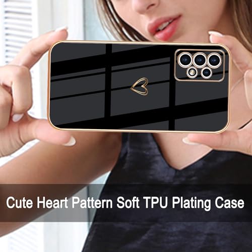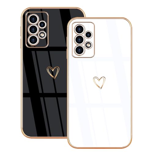 Lonrapa 2 Pezzi Cover per Samsung Galaxy A33 5G Dorato Amore Cuore Motivo Placcatura TPU Custodia per Galaxy A33 5G Silicone Morbido Fotocamera Protettiva Antiurto Case per Ragazze - Bianco e Nero