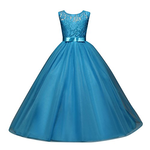 Lonshell - Abito con fiori da bambina, in tulle, senza maniche, ideale per il Natale o matrimonio, Bambina, Lonshell_weihnachten Blumenmädchenkleid, Blau, 6T