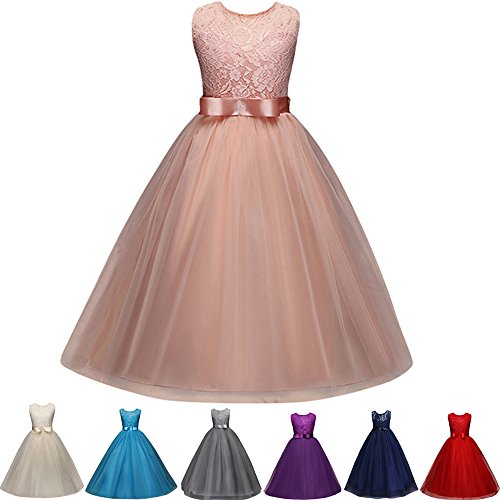 Lonshell - Abito con fiori da bambina, in tulle, senza maniche, ideale per il Natale o matrimonio, Bambina, Lonshell_weihnachten Blumenmädchenkleid, Rosa, 12T