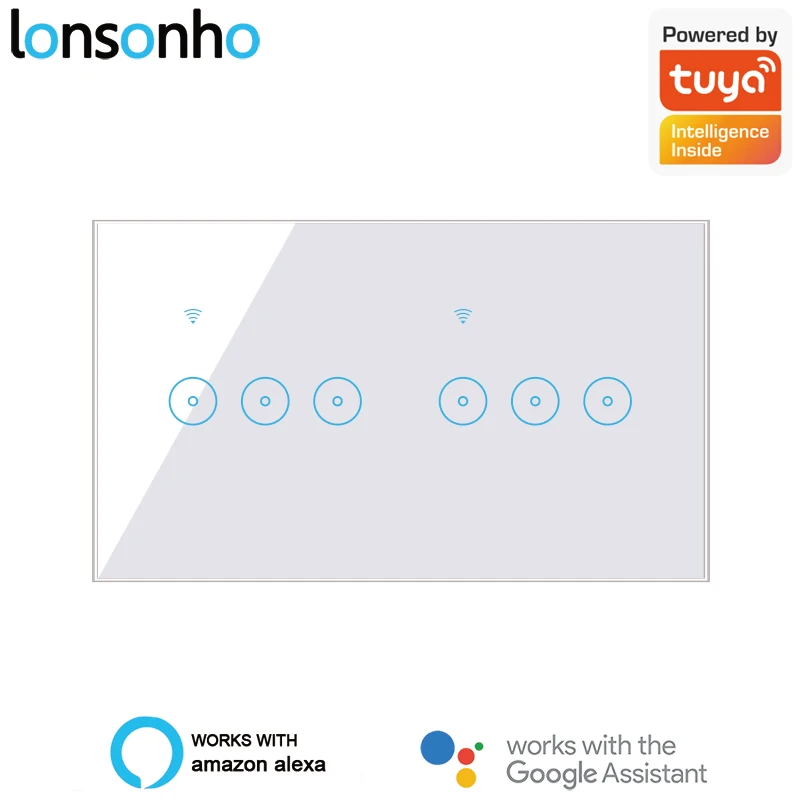 Lonsonho WiFi Smart Switch Tuya eWeLink 4 5 6 Gang Glass Touch Panel Wall Switch Wireless Control Alexa Google Home Compatible