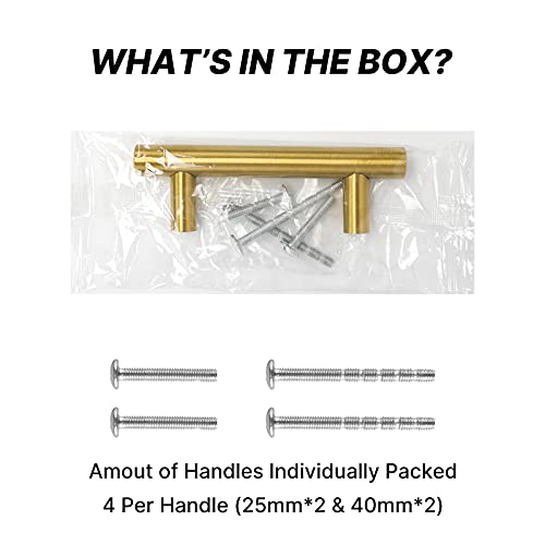 LONTAN LS201GD - Pomelli per cassetti e ante della cucina, in ottone spazzolato, con barra a T, in acciaio inox, confezione da 15, Acciaio inossidabile, Brushed Brass, hole centers: 64mm