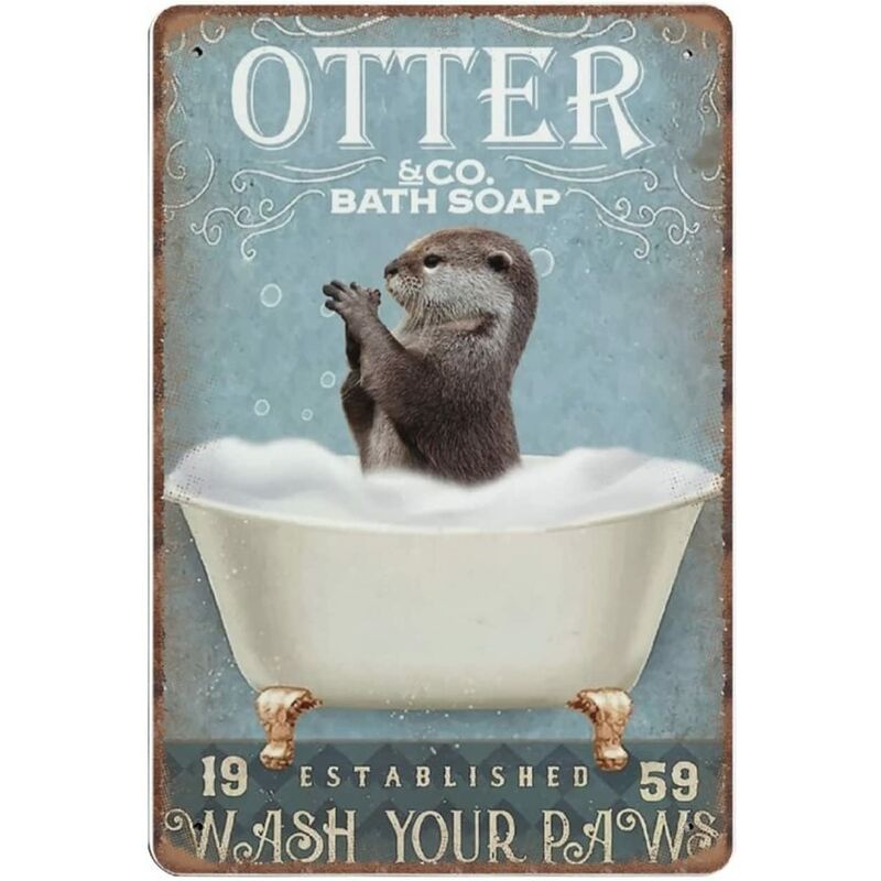 Lontra & Co. Sapone Da Bagno di Lavaggio Le Zampe Lontra Bagno Decor Igienici Segni di Latta di Metallo per la Cucina Da Giardino Garage Bagno Decorazione Della Parete,20x30cm 12x8 Inches