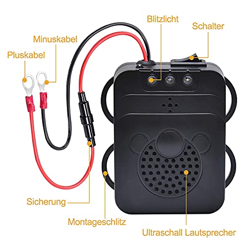 Ampiamente utilizzato: il dispositivo di protezione ad ultrasuoni per auto è alimentato da una batteria da 12 V, non necessita di alimentazione supplementare e la maggior parte delle auto può essere utilizzata in modo affidabile. La superficie di utilizzo è di 40 metri quadrati e protegge efficacemente l'auto da topi, scoiattolo e altri roditori. È anche molto utile in magazzini, garage, cucine e altri luoghi.