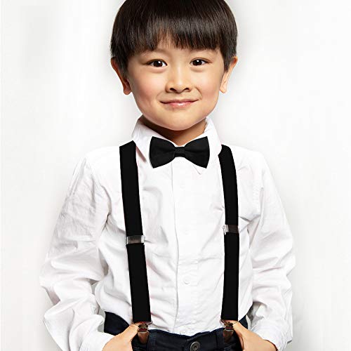 Axy - Look coordinato padre-figlio, bretelle con papillon set per uomo, donna, bambini. nero Schwarz (Herren 2,5cm + Kinder Hosenträger Breit 2,5cm)