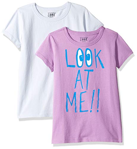 Look by crewcuts - Maglietta a maniche corte da ragazza, tinta unita/stampa, confezione da 2 pezzi, Look at Me/Light Blue, 6-7