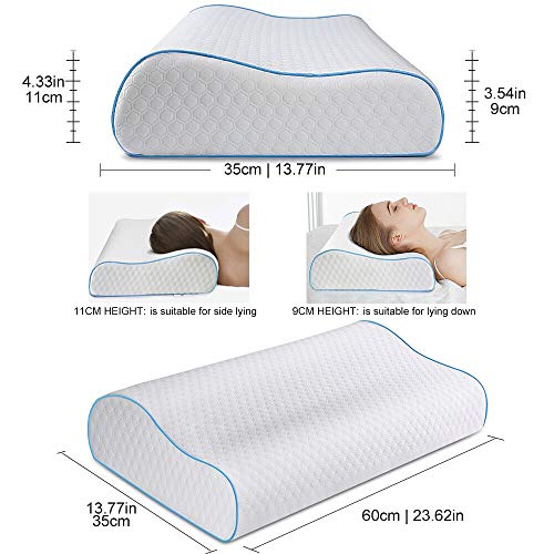 Look envy Cuscino in Memory Foam per Dormire Morbida Traspirante Cuscino Cervicale Memory con Ergonomico Design Sostenere il Collo e le Spalle Alleviare Dolore Lavabile Copricuscini