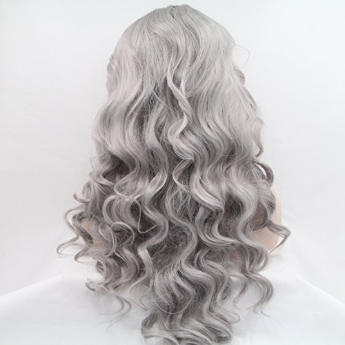 Look naturale Premium grigio argento lungo corpo onda parrucche sintetiche Glueless Lace Front WIG Heat Resistant Fiber Hair