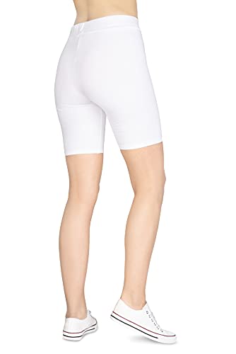 Looksy - Pantaloncini da Ciclismo da Donna, in Cotone, Lunghezza al Ginocchio, Estivi, Biker, Yoga, Sport, Bianco S