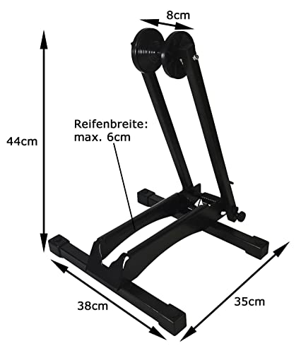 Cavalletto per bicicletta estremamente robusto e pratico, che si distingue per la sua facilità d'uso. Una volta aperta la bicicletta può essere inserita tramite il sistema oscillante che supporta la ruota anteriore o posteriore. Il braccio di supporto con rullo di guida si ammorbidisce nella posizione corrispondente alla dimensione della ruota e stabilizza la bicicletta grazie al meccanismo a molla.