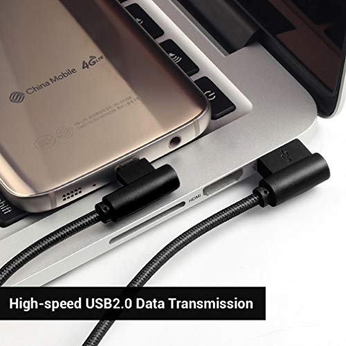 LoongGate Super Short angolo retto micro cavo USB, nylon intrecciato 90 grado USB a a micro B ricarica & cavo di sincronizzazione dati per tutti i dispositivi micro USB (nero)