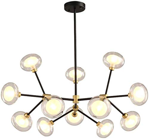 Loonju Glass Globe Sphere Sputnik Lampadari, 60W LED G9, rami d'antiquariato nero Lampadario di illuminazione per Soggiorno Camera da letto Bar Pub-12 luci bianco caldo, 12 Luci, bianco caldo