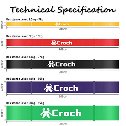 Particolarmente resistenti agli strappi: le fasce di resistenza Croch extra resistenti agli strappi sono realizzate in 100% lattice naturale e sono extra resistenti agli strappi, elastiche e durevoli, più si allungano, maggiore sarà la resistenza. Le buone fasce di resistenza Croch possono migliorare la tua forza e flessibilità, massimizzando il divertimento e la sicurezza durante l'allenamento.