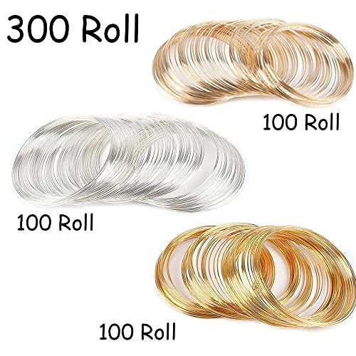 300 Loop Filo di Memoria in Acciaio, Filo D'Acciaio di Memoria, Filo di Rame, Filo per Perline per Gioielli, Filo di Memoria in Acciaio per Creazione di Bracciali, Creazione di Gioielli (3 Colori)
