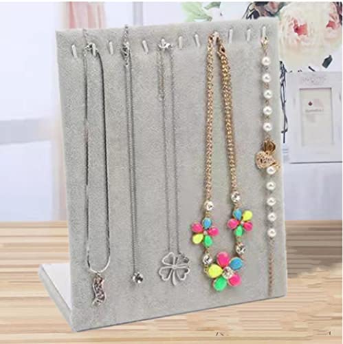 Loopunk Espositori Collane Velluto,Espositore per Collana Espositore per Gioielli a Forma di L Organizzatore,Espositore per Ciondolo per Collana,Elegante Espositore da Tavolo per (Color: Grigio)