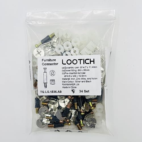 LOOTICH Connettore Eccentrico Raccordi a Camme Ø14,7mm con Tasselli M6x36mm e Dadi Pre-inseriti M6 per il Collegamento del Pannello del Mobiletto Mobili Nero (Set da 34)