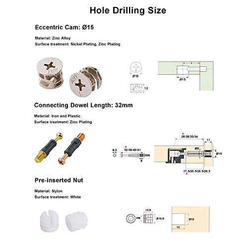 Questi raccordi a camme sono ampiamente utilizzati per il collegamento a pannello di mobili a pannello, mobili per ufficio, armadio e letto, ecc.