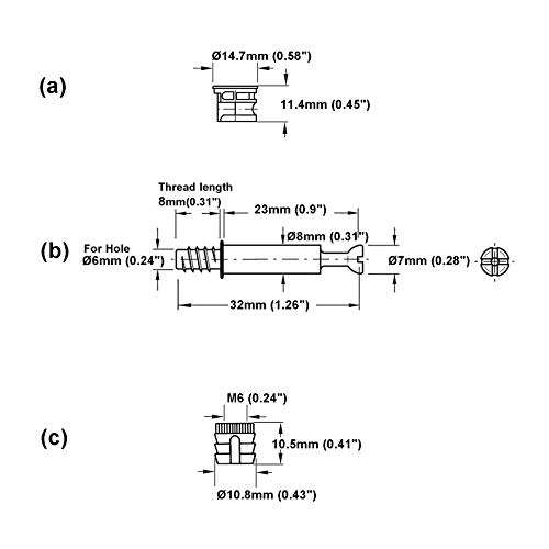 LOOTICH Connettore Eccentrico Raccordi a Camme Ø14,7mm con Tasselli M6x32mm e Dadi Pre-inseriti M6 per il Collegamento del Pannello del Mobiletto Mobili Nero (Set da 34)
