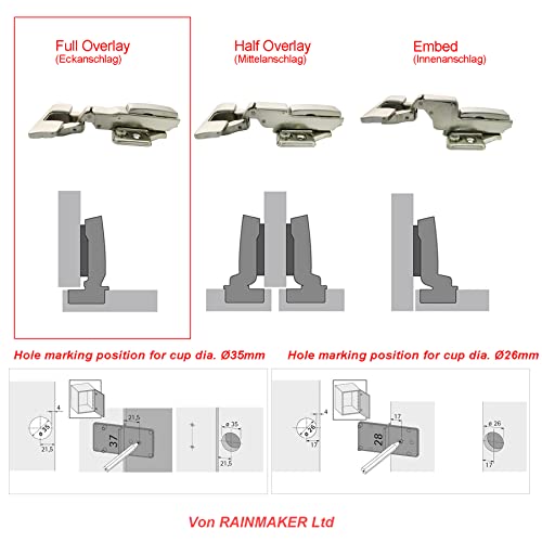 LOOTICH 95 Grado Clip-on Regolazione a 3-Way Battuta Esterna Cerniere 35mm con Ammortizzatore per Porte Soft Close Cerniera per Cucina Armadio Porta Ante Mobili Paracolpi 8 Pezzi