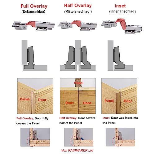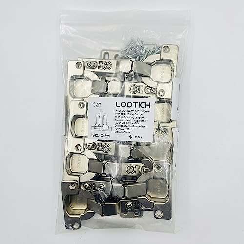 LOOTICH 95 Grado Mezza Battuta Esterna Forte Cerniere 40mm con Ammortizzatore per Porte Pesanti e Spesse Soft Close Cerniera per Cucina Armadio Porta Ante Mobili Paracolpi 8 Pezzi