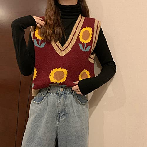 Design: Donna classica senza maniche ponticello gilet con scollo a V, con modello girasole classico gilet lavorato a maglia, ragazze maglia top.A mix di stile coreano e stile giapponese.