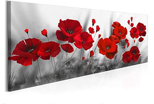 Looui Pittura Diamante a Mosaico Grande 5D Diamond Painting Kit Fiore di Papavero Rosso Adulti Fai-da-Te Trapano Pieno Strass Ricamo for Home Soggiorno Wall Arts Decor Diamante Tondo 30x60cm H14642